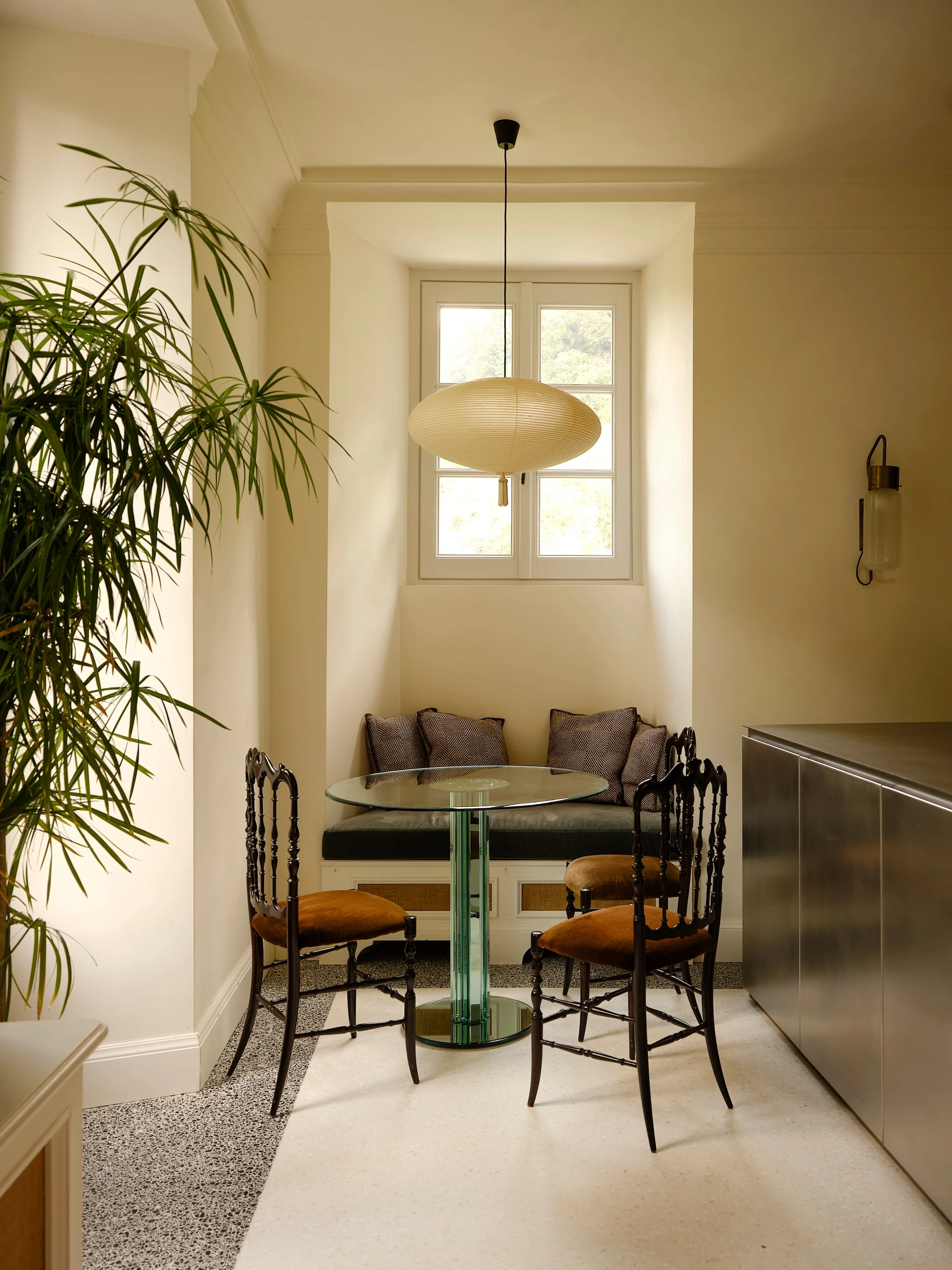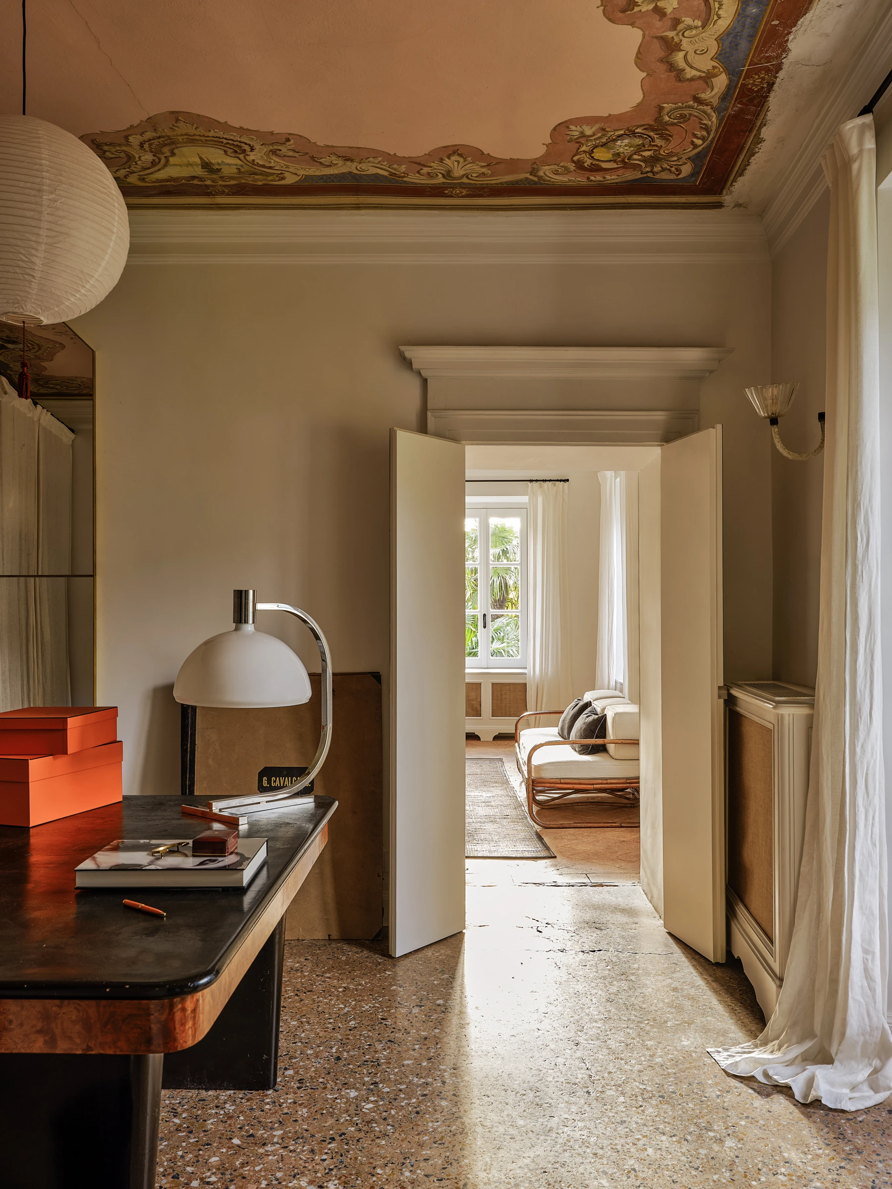 In summary, Villa Ego is a treasure trove of stories, a harmonious fusion of past and present, and an evolving work of art. The villa embraces its past, preserving significant historical elements like the Moltrasio stone staircase, which gracefully connects the main spaces. Original plaster and paint decorations adorn the walls, while natural lime-based paint enhances the façade and interiors.